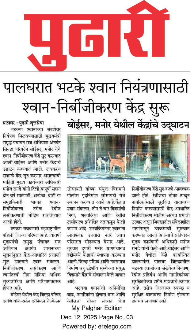मुख्यमंत्री पंचायतराज अभियानास जिल्हा परिषद पालघर अंतर्गत भटक्या कुत्र्यांची निर्बीजिकरण मोहिमेला सुरुवात
