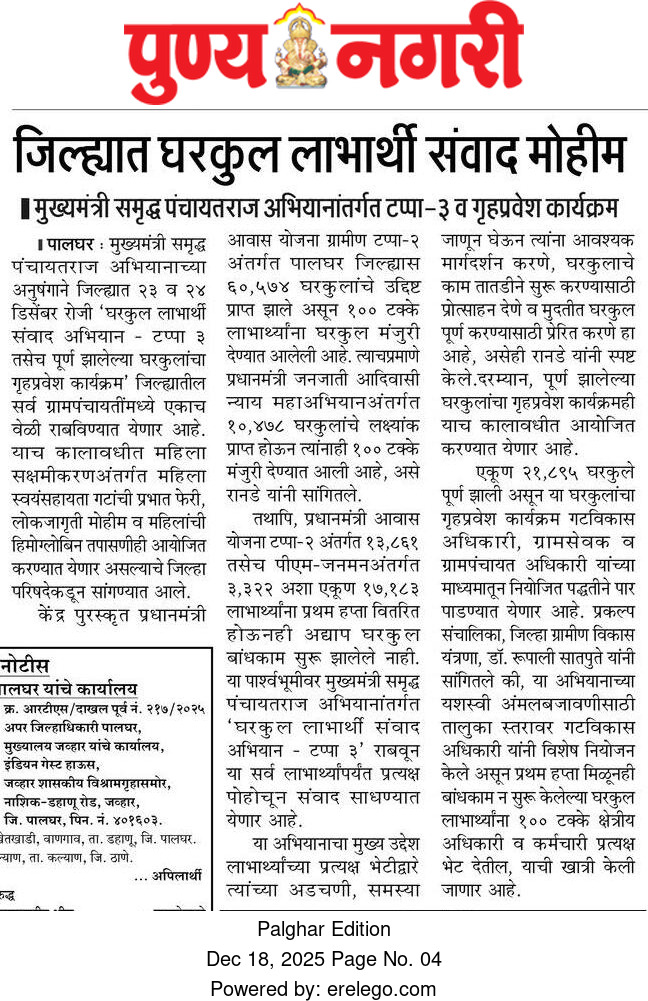 मुख्यमंत्री समृद्ध पंचायतराज अभियानांतर्गत जिल्ह्यात ‘घरकुल लाभार्थी संवाद अभियान – टप्पा ३’ व गृहप्रवेश कार्यक्रम